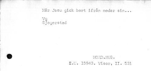 //// När Jesu gick bort ifrån moder sin... Vg //// Sjogerstad //// 'W NORD. MUS . //// E.U. 15943. Visor, II. 531 ////