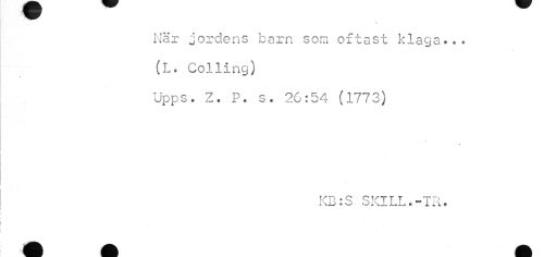 //// När jordens barn som oftast klaga.. * (L. Colling) //// Upps. Z. P. s. 26:54 (1773) //// « //// KC • S SKILL*- I* //// fl I É m i I ////