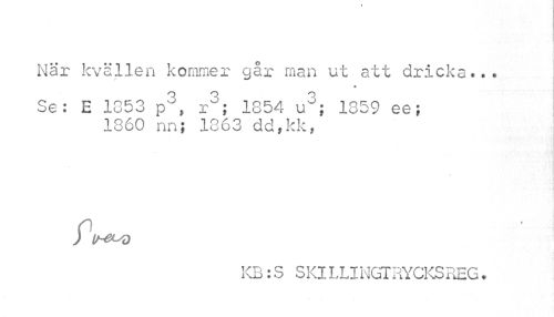 //// i //// Nar kvällen kommer går man ut att dricka... //// Se: E 1853 p3, r3; 1854 u3; 1859 ee; //// 1860 nn; 1863 dd,kk, //// PtMZ^D //// KB: S SKI L LI NGT RYCKS REG. ////