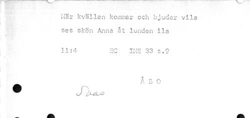 //// När kvällen kommer och bjuder vila //// ¦ //// ses skön Anna åt lunden ila //// 11:4 HC INE 33 s.9 //// ÅBO ////