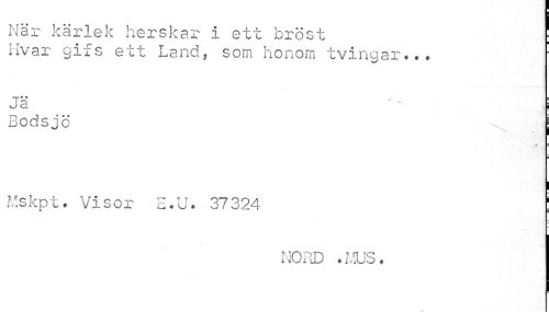 //// I //// Nar kärlek herskar i ett bröst //// Hvar gifs ett Land, som honom tvingar... //// Jä • - i //// Bodsjö { //// Mskpt. Visor S.U. 37324 //// NORD .MUS. ////