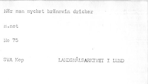 //// När man mycket brännvin dricker rn.no t No 75 //// v //// SVA Kop LANDSMÅLSARKIVET I LUND ////