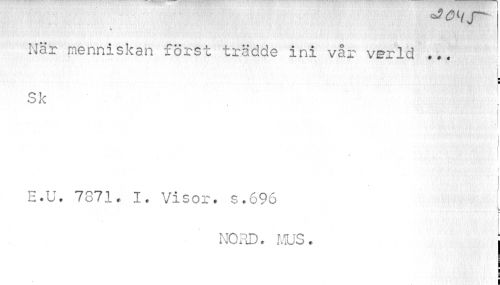 //// <ZJ OK -c //// U f J //// Här menniskan först trädde ini vår verld ... //// i //// i //// Sk //// • ^ //// i //// E.U. 7371. I. Visor, s.696 //// ; //// i :o. D . MUS. //// ¦ ¦ //// I ////