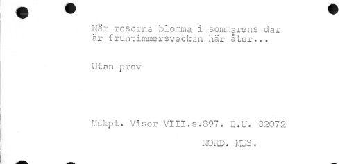 //// När rosorna blomma i sommarens dar är fruntimmersveckan här åter... //// Utan prov //// Mskpt. Visor VIII.s.897. E.U. 32072 //// NORD. MUS. ////