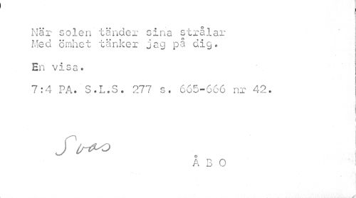 //// När solen tänder sina strålar //// Med ömhet tänker jag på dig. En visa. //// 7:4 PA. S.L.S. 277 s. 665-666 nr 42. //// i I //// ¦ //// Slr^o ^ ! //// ÅBO //// jt 1 ////