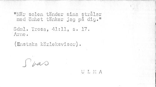 //// "När solen tänder sina strålar med ömhet tänker jag på dig." //// Sdml. Trosa, 41:11, s» 17, Arne« //// (Enstaka kärleksvisor)* //// • * u l n A //// ¦ ////