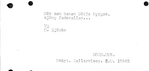 //// När som banan börja byggas, sjöng faderallan... //// Ar ~ //// K. Björkö //// s //// NORD. I.15S. Mskpt. Rallarvisor. H.U. 18642 ////