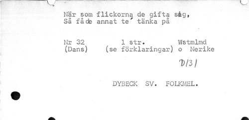 //// / //// När som flickorna de gifta såg, Så få ds annat te' tänka på //// f //// Nr 32 1 str. Wstmlmd //// (Dans) (se förklaringar) o Nerike //// D/3/ //// DYBECK SV. FOLKMEL. ////