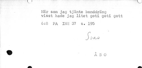 //// När som jag tjänte bonddräng visst hade jag litet goti goti gott //// 6:8 PA INE 37 s. 195 //// S ////