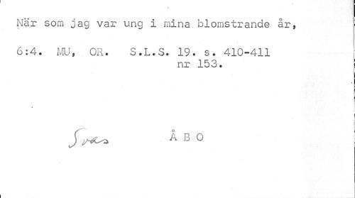 //// När som jag var ung i mina blomstrande år, : //// 6:4. MU, OR. S.L.S. 19. s. 410-411 » //// nr 153. j //// » I //// I //// ! //// /^Co ÅBO //// » , //// 4 //// l //// j, ////