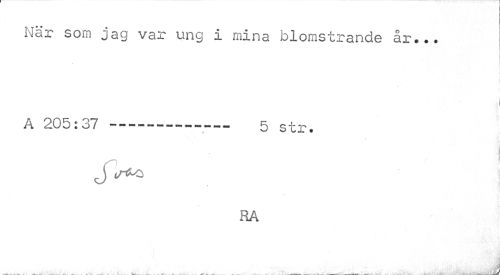 //// När som jag var ung i mina blomstrande år... //// I //// A 205:37 -...- 5 str. //// j //// HA //// 4 //// . . . _ » ... . _ « . + y _ . ^ . . a 1 i * -VÄ. ..(;¦ V. J* ._.' ' JU^ ////
