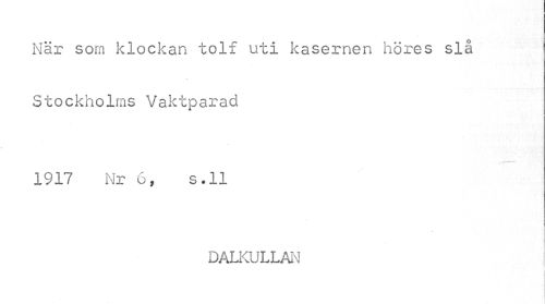 //// När som klockan tolf uti kasernen höres slå Stockholms Vaktparad //// 1917 Nr 6, s.ll //// DALKULLAN ////