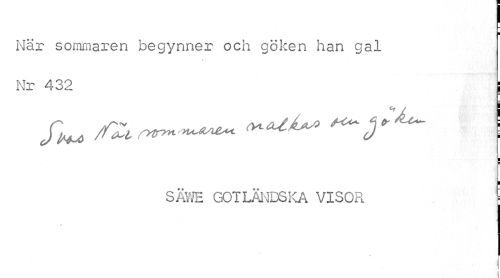 //// I ¦ //// När sommaren begynner och göken han gal //// Nr 432 | //// f^ /fZt ^ ****** 3 : //// I //// ¦ //// SÄVffi GOTLÄNDSKA VISOR //// / //// 1 l ////