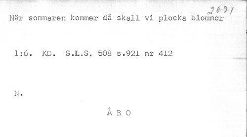 //// 'mm //// När sommaren kommer da skall vi plocka blommor 1:6. KO. S.L.S. 508 s.921 nr 412 //// N » //// ÅBO ////