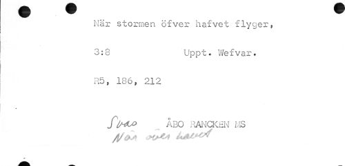 //// När stormen ofver hafvet flyger, 3:8 Uppt. Wefvar. //// R5, 186, 212 //// 4 //// ÅBO HANCKfiN MS //// /t/ ////
