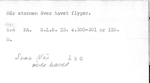 //// När stormen över havet flyger. //// ¦ //// 6:4 PA. S.L.S. 23. s.300-301 nr 126. N. //// P "/ "* O //// J A^o A B O //// i y //// loSUMX ////