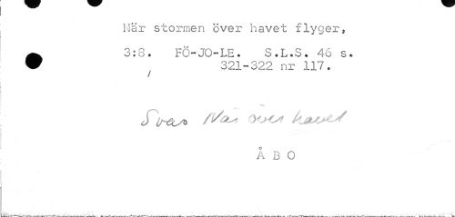 //// När stormen över havet flyger, //// •3:8. FÖ-JO-LE. S.L.S. 46 s. //// 321-322 nr 117. //// _ i»: //// /l/tL* OOOI kjSM^ J //// ., y' //// ÅBO //// . i • . -v , ,, v \ ////