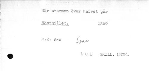 //// ¦ - • -När stormen över hafvet går //// Höstgillet« 1869 //// v //// M.2. A-n ^IfAsO //// ^ L.U B SKILL. UNIK. ////