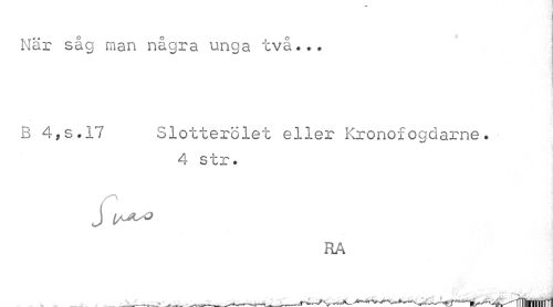 //// När såg man några unga två..* //// B 4,s.l7 Slotterolet eller Kronofogdarne. //// 4 str. //// J //// RÅ //// ___ ___-^-v .^^fflllmlifflllttll ////