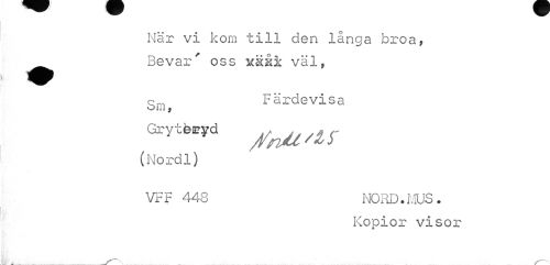 //// När vi kom till den långa broa, ^^ Bevar' oss xäå3c väl, //// cm Färdevisa //// Oiil , //// Grytta*d /nit'K //// (Nordl) //// VFF 448 NORD. MUS . //// Kopior visox- ////