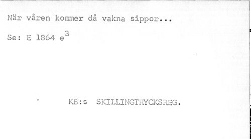 //// När våren kommer då vakna sippor... Se: E 1864 e3 //// v //// KB:s S Kl LLI NGT RYCKS REG. ////