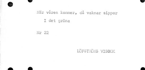 //// När våren kommer, då vaknar sippor I det gröna //// Nr 22 //// LÖFSTRÖMS VISBOK ////