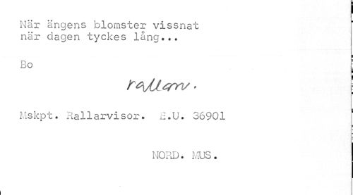 //// I //// När ängens blomster vissnat när dagen tyckes lång... //// : //// dO //// t A/J tm/ - \ //// i //// Mskpt. Hallarvisor. E.U. 36901 1 //// NORD. MUS. ////