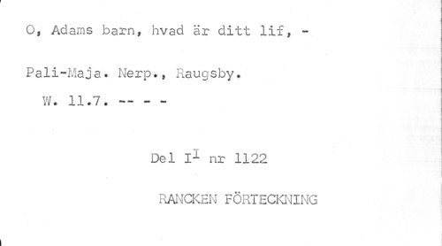 //// O, Adams barn, hvad är ditt lif, - //// Pali-Maja. Nerp., Raugsby. W. 11.7. --- //// Del I1 nr 1122 //// * //// RANCKEN FÖRTECKNING ////