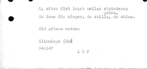 //// O, afton flyt lugnt mellan stränderna //// gröna, //// •Du ämne för sången, du stilla, du sköna. Vid aftons vatten //// Slimminge (Sk% 84:147 //// LUF //// 4» //// _ _ _ ___ _ . _ _ _.__- . L A, . __- --^.S . - . _ „___- ___rV Al -i. ___---- --. -PäM--A--- ---„ .. ja. ---ifclll. -- ////