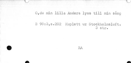 //// O,du min lilla Anders lyss till min sång //// B 98:3,s.202 Kuplett ur Stockholmsluft. //// 3 str. ////