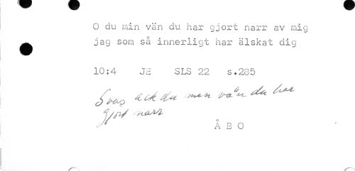 //// O du min vän du har gjort narr av mig ^ jag som så innerligt har älskat dig //// 10:4 33 SLS 22 s.285 //// f/fl/ M-U^Z. //// ÅBO ////