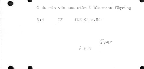 //// O du min van som står i blommans fägring 8:4 LF INE 94 s.54 //// i V^L^ //// ÅBO //// s //// ^Bl fl ////
