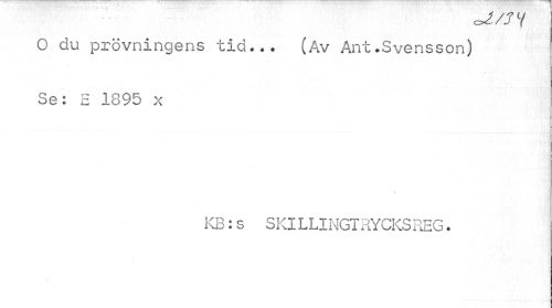 //// c*z/J Y //// O du prövningens tid... (Av Ant.Svensson) Se: E 1895 x //// KB:s SKILLINGTRYCKSREG. ////