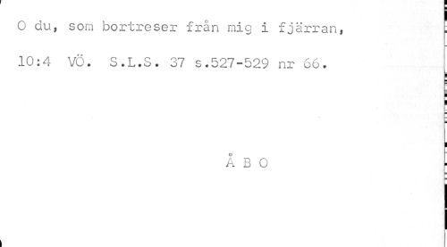 //// I //// O du, som bortreser från mig i fjärran, : //// 10:4 VG. S.L.S. 37 s.527-529 nr 66. //// I //// I //// ÅBO ////