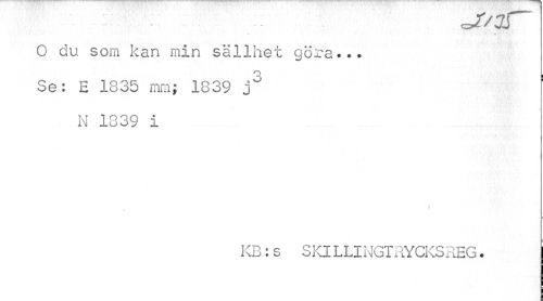 //// ^T/JJ //// O du som kan min sällhet göra... Se: E 1835 mm; 1839 //// i //// N 1339 i //// Å //// KB:s SKILLINGTRYCKSREG. ////