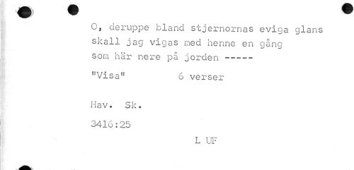 //// O, deruppe bland stjernornas eviga glans skall jag vigas med henne en gång som här nere på jorden --- //// r?Visaf? 6 verser //// Hav. Sk. 3416:25 //// L UF ////