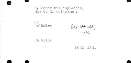 //// O, Fader uti englachor, Maj du är välkommen, //// Sk //// Balkåira ^ //// f)Q> //// r //// HA Visor //// NORD .MUS. ////
