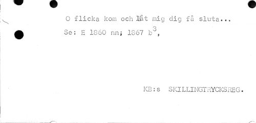 //// , O flicka kom och löt mig dig få sluta... //// 0 Se: E 1860 nn; 1867 b'3, //// KB:s SKILLINGTRYCKSREG. ////