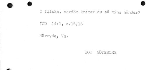 //// O flicka, varför kramar clu så mina händer? IOD 14:1, s.15,16 Härryda, Vg. //// IOD GÖTEBORG ////