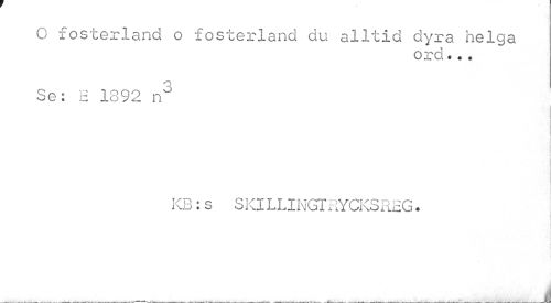 //// O fosterland o fosterland du alltid dyra helga //// ord?.. //// Se: E 1S92 n3 //// i //// KB:s SKILLINGTRYCKSREG. ___J ////