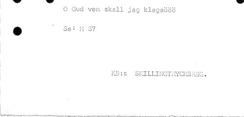 //// O Gud vem skall jag klagaööö A Se- H 37 //// KB:s SKILLINGTRYCKSRBG. //// » ////