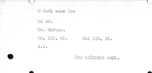 //// O Gudi vare lov //// No 30. öb. Wefvar. //// R6, 191, 41. SLS 125, 15. //// S * o * //// 9 ÅBO SJÖBERGS SAML. ////