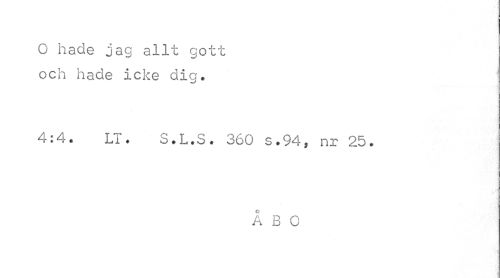 //// O hade jag allt gott och hade icke dig. //// 4:4. LT. S.L.S. 360 s.94} nr 25. //// ÅBO ////