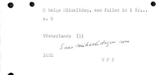 //// O helga Mikaelidag» som faller in i år... s« 5 //// Västerlanda (B) 1631 //// V F F ////