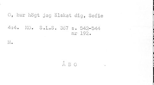 //// i //// 0» hur högt jag älskat dig, Sofie //// 4:4. KO. S.L.S. 367 s. 542-544 . I //// nr 192. | //// N. < //// I ¦ //// a bo . ; ////