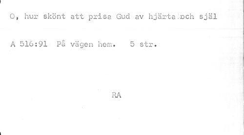 //// O, hur skönt att prisa Gucl av hjärta :dc\i själ A 516:91 På vägen hem. 5 str. //// RA //// % j ////