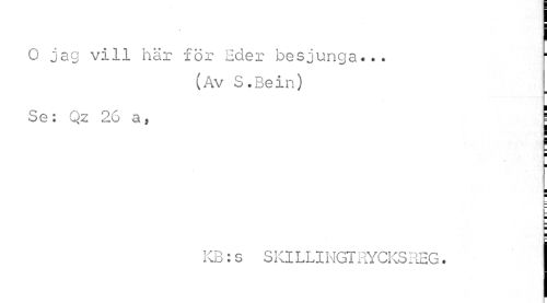 //// O jag vill här för Eder besjunga... //// (Av S.Bein) //// Se: Qz 26 a, j //// ¦ //// ¦ ¦ ¦ //// KB:s SIQ LLIHGTRYCKSREG. ////