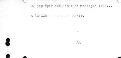//// O, jag äger ett hem I de k saligas land... Å 16:335 --- 5 str. ////