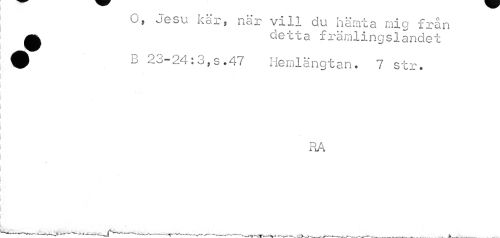 //// o, Jesu kär, när vill du hämta mig från //// ^ detta främlingslandet //// # D 23-24:3,s.47 Hemlängtan. 7 str. //// RA //// ^ ^^ 1 m 'v^s-t• _t-r'-''"^-'^-^-^---___ ä...__,___ ////