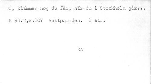 //// O, klämmen nog du får, när du i Stockholm går*.. B 98:2,s.107 Vaktparaden. 1 str. //// RA ////